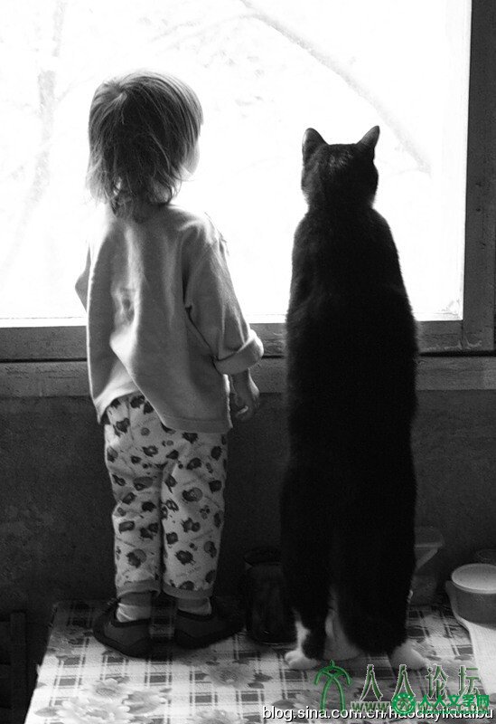 看这摄影,小孩和猫猫凭窗眺望,他们看得是风光、热闹还是期待什么?每一位看客各有各的猜测,我却是想到,猫咪在陪伴期待妈妈归来的小女孩,蓦然间,百感交集,感动、温馨,喟叹、酸楚,百滋百味。一句话,情义无价!