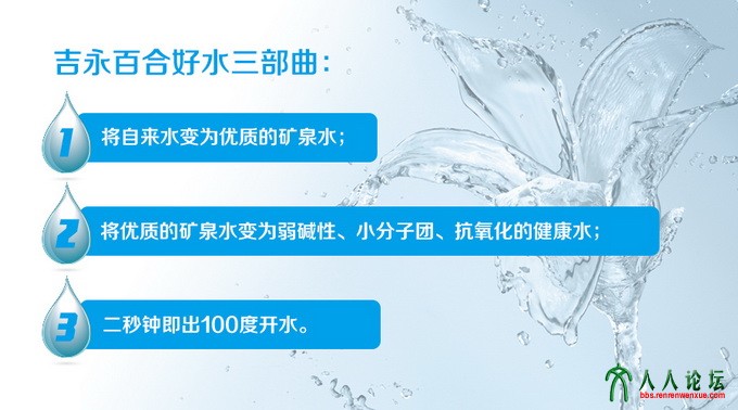 ![]() ![]() 即热:直接注入自来水,2秒钟即出100度开水,不用等待,且温度可调节。 净化:通过净化滤芯过滤有害物质,保留有益矿物质,将自来水变为优质矿泉水。 活化:通过活化滤芯将优质的矿泉水变为弱碱性、小分子团、抗氧化的健康水,更有利于人体吸收,弱碱性水对人体也最健康。 整机获国家专利,并通过复旦大学严格检测认证,可提供认证证书。 可用于卧室、书房、办公室等诸多场所,省却桶装水的麻烦,出来的水可用于饮用、泡茶、泡咖啡、淘米、煲汤,等等,水质优于市面矿泉水,更健康。 新品上市火爆抢购中!价格实惠,仅售&898, 市场同类产品中质量最优,性价比最高!有需要的可联系。厂家直供,可招代理! ![]() ![]() ![]() ![]() ![]() ![]() ![]() |