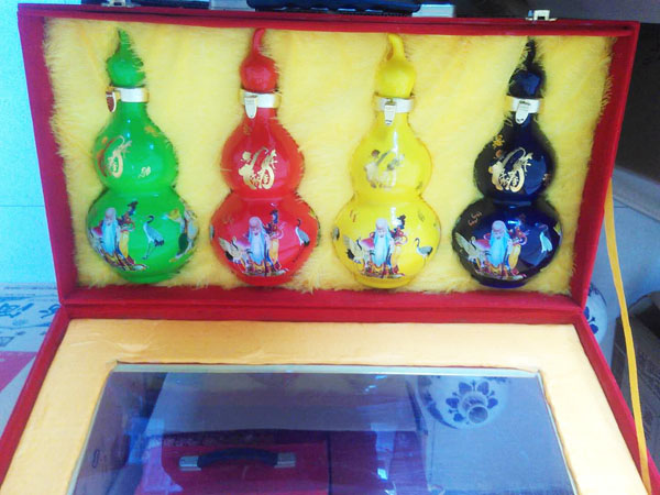 2、 二等奖两名,奖价值13800元的精品酒。包括小麦酒十年陈酿,珐琅彩《奖杯》,5000mL,收藏价9999元及《四色葫芦》酒。