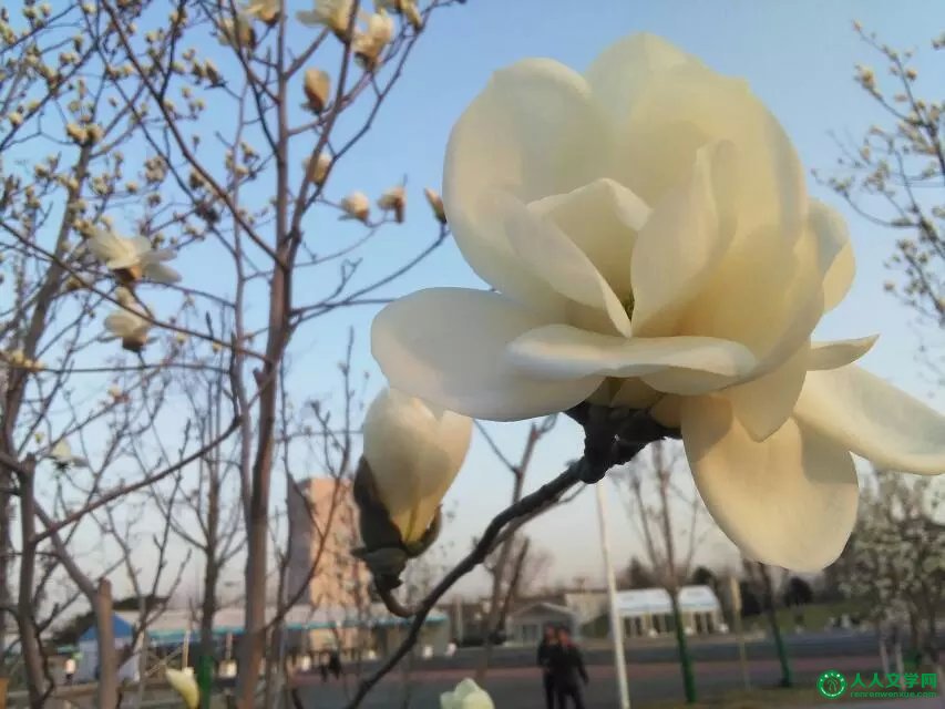 当春万物蓄将发,盼雨期风悄孕芽。 独看此株添亮色,不需绿衬竟繁花。