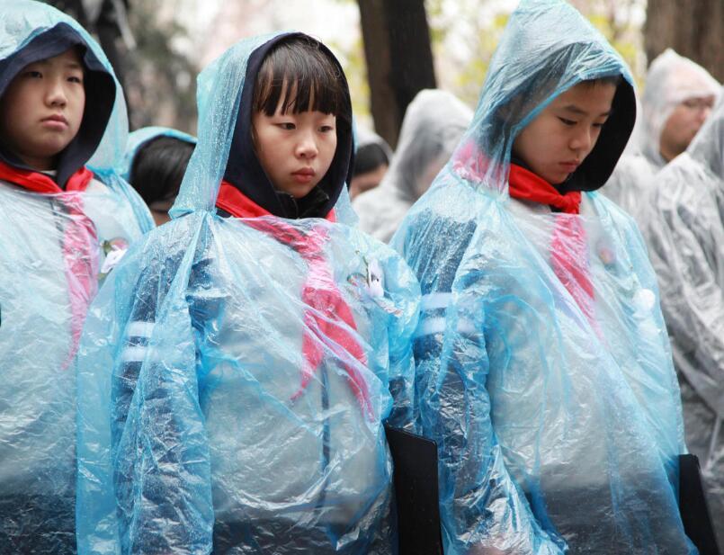 各界人士冒雨为南京大屠杀30万遇难同胞默哀。