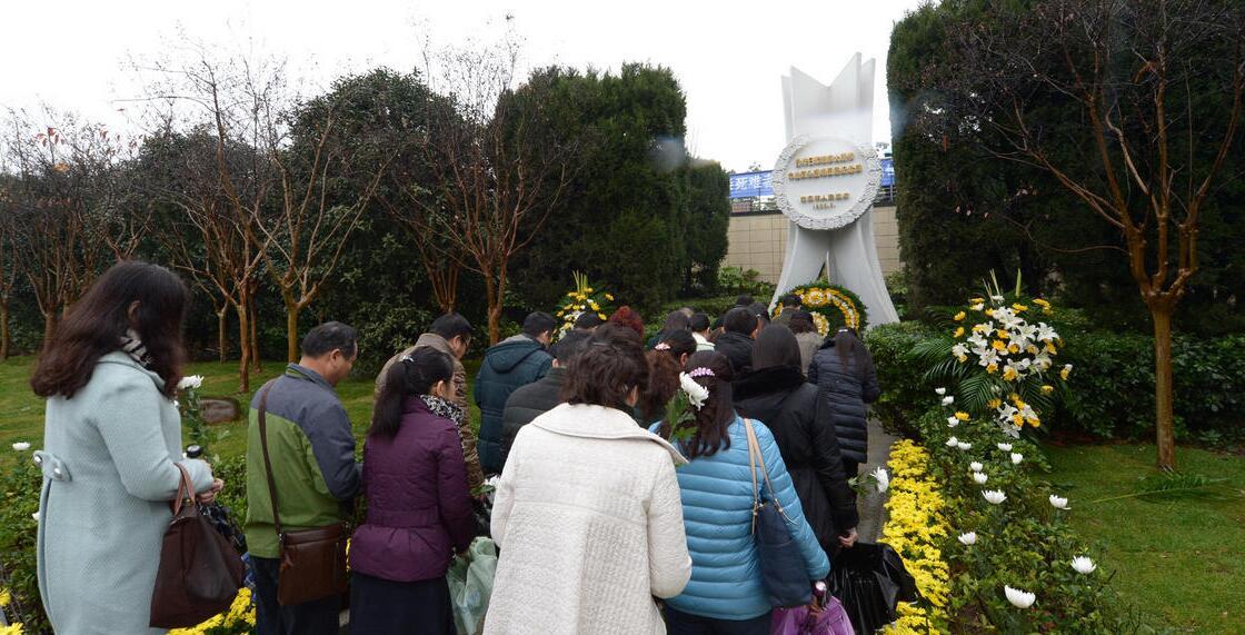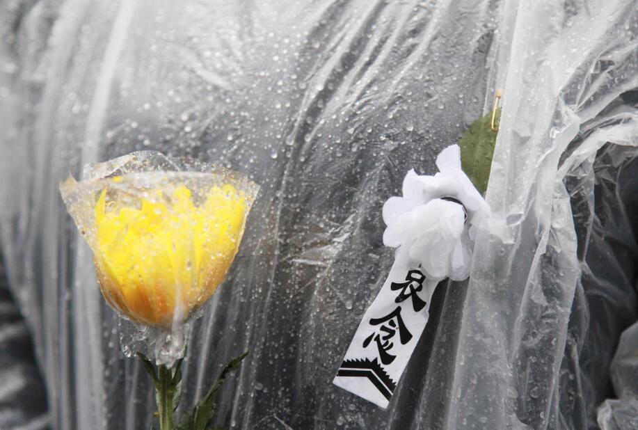 在侵华日军南京大屠杀北极阁附近遇难同胞丛葬地,各界人士冒雨为南京大屠杀30万遇难同胞默哀。