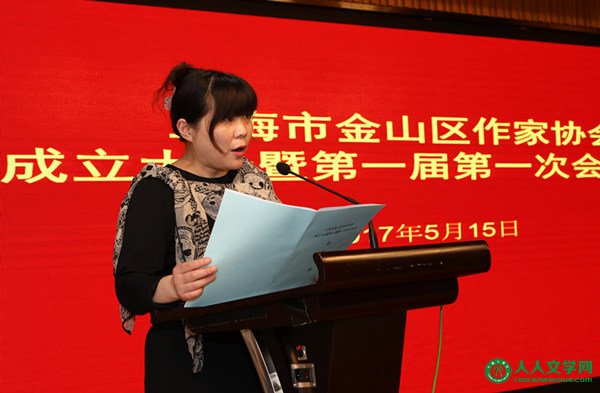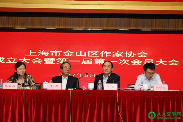 人人文学网讯:5月15日下午 ,金山区作家协会成立大会暨第一届第一次会员大会在区文化馆三楼召开。上海市作家协会党组书记、副主席王伟,中共金山区委副书记程鹏,金山区文广影视局党委书记、局长、区文联主席陆引娟,金山区民政局副局长、社团局局长刘保军等领导以及有关单位及协会相关负责人一同出席。