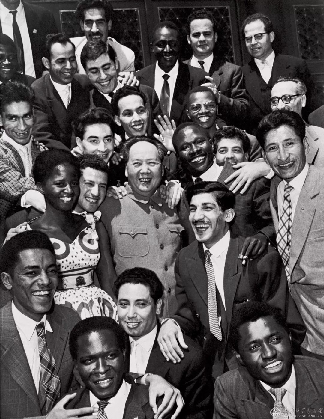1959年 第三届全国摄影艺术展览 毛主席与亚非拉青年在一起 侯波 摄
