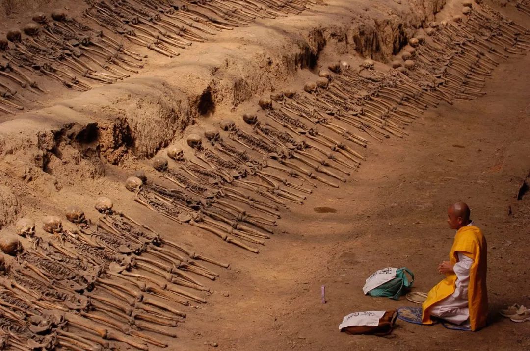 2006年5月9日,日本僧人岩田隆造来到辽宁省辽阳市的“万人坑”。他在累累白骨前跪拜诵经,为亡灵祈祷忏悔。这里埋葬着数千具中国劳工的尸骨,见证着日本帝国主义侵略中国的罪证。