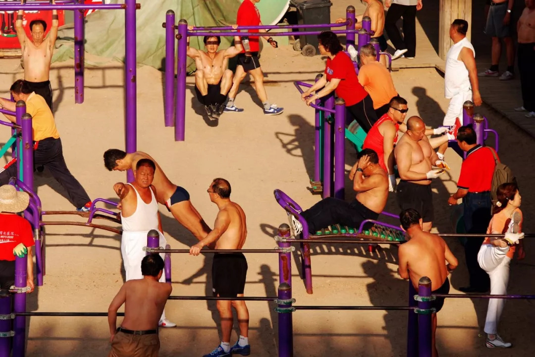 2009年6月3日,山东省青岛市第一海水浴场。每天早晨,市民再次健身锻炼。