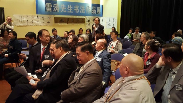 我虽然身在政府公职,但我坚持不懈读世界经典文学,读基督教、伊斯兰教、天主教、佛教、道教等等,这些宗教的共同主旨就是向上向善,而绝非邪恶。我母亲是一位虔诚的佛教徒,我是一名共产党员。母亲说:你信你的共产党,我信我的阿弥陀佛,你无论信什么,一定要真信。雷涛的讲话,视野宽阔,深入浅出,经典信手拈来,引起华人作家极大兴趣,话题接踵而至,雷涛逐一回答释疑,作家的角色定位越辩越清晰。