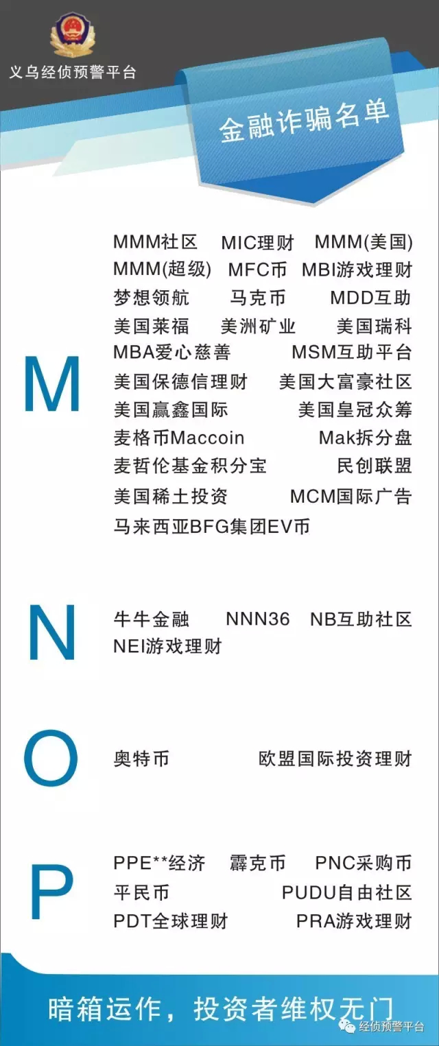 看完视频,大家再来看看上榜的传销组织名单,敬而远之,甚至广而告之,让身边亲友也能远离这类骗局,守住血汗钱!