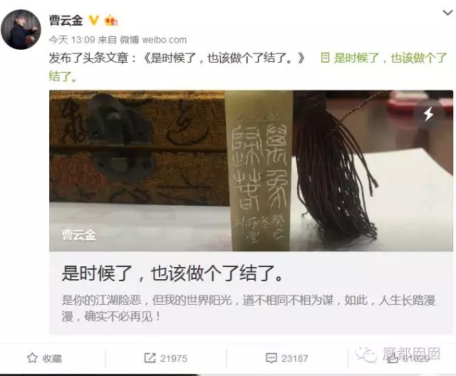 为什么你和所有人,和媒体,都谈的是师徒感情,可转身到我这里,就谈的是一纸冷冰冰的合约?合同里全是束缚,没有发展,我有追求更高进步的愿望,我想拓展我的事业,我想尽快有能力接母亲来身边尽孝,于是才找到你商量,想求个中间之道。可就是因为这,我就被禁演,我就不再是你的徒弟了。就因为这,我甚至就成了你口里叛徒,我从此就是欺师灭祖,十恶不赦的罪人了?我不懂。 你腕儿大,你很红,你有庞大的粉丝群,这是你的本事,所以你一有机会就在微博上,骂所有离开你发展的人,你骂我、骂刘云天,骂何云伟、骂李菁、骂徐德亮、骂王文林、骂曾经无私支持你的张德武,后来你干脆也不点名了,就是指桑骂槐,含沙射影,只要离开你的,无一幸免。郭鹤鸣、韩鹤晓、啜鹤熊、王鹤冠、张九芳,戴九安,连这些出来,独立靠自己发展的“小鹤”,“小九”科的师弟们,你都没放过。你竟然还在微博上说“有很多徒弟自己发展,我们关系都非常亲近。”没了,真的没了,所有走的,一个不落,你都骂干净了,还有谁跟你亲近? 你说你是伤的深,所以看不开,可是我的离开,其他人的离开,影响到你了吗?你该演出演出,该商演商演,该录节目录节目,风光无限。唯一不同的是,我们不再给你赚钱了,所以你就恨我们,骂我们?你每提一次,我就被你的粉丝、你的人,你的水军,铺天盖地的骂一次,如果那些骂声是刀,我已经被刀刀见血,活刮见骨了!我都伤透了! 我一开始想不通你为什么要这么做,现在明白了,你掌控话语权,用舆论压倒我,无非是想我过的不好罢了,我没有签那一张卖身契,不再给你赚钱,所以我得去死,我不该在娱乐圈混下去,碍着你的眼了。 尤其是从去年开始,你利用新的合作平台,新的发言契机,站在道德至高点,再一次旧事重提,却依然不敢指名道姓,用“背后插刀,置于死地”这种危言耸听的言论,混淆视听。你不再去招惹大的机构,大的平台,把苗头指向了我们这些离开的人,比你弱小的人,我们成为你新树立的谩骂对象,以此制造炒作话题,塑造你“遭人背叛,心慈手软”的完美形象。 网络上,你雇水军,歪曲过往的历史,我看到各种满怀恶意的谣言,不择手段地改写当年的历史,把我塑造成一个忘恩负义,不忠不孝的,永世不得翻身的“叛徒”,这完全是要用网络暴力毁灭了我,试问,如果我始终不辩不说,沉默以对,那最终到底是谁要置谁于死地呢? 生活上,你也四处为我设置难题:一零年底,我在天津体育馆开个人专场,你跟场馆人说:“让消防不过,给他搅和搅和。”一一年十一月,我在北展办十周年演出专场,演出头一天,舞美团队进场装台,你正好结束当晚商演,你找负责人说:“别给这小子装台,我看他怎么演。”我听了心里十分委屈,但也没想和你撕破脸,装台谁都能装,这事影响不到我;一三年,我接到天津卫视春晚的邀约,一切正常准备之后,导演组告诉我:“金子对不起,因为他在,你不能来了。”到了一四年,也是你第二年和春晚组接触,也许是有了第一年春晚合作的底气,你跟导演组说:“有我没他,有他没我。”但这事儿,很遗憾,谁能不能上春晚,只能看审查结果;你与某网络平台战略合作的三年,我在该平台没有一条属于我的新闻,也是你放话说:“要跟我独家合作,就不能有他的推广。”我都忍过去了,类似的事情,沟沟坎坎,这些年,多的我几乎数不过来,一桩桩,一件件,我也习惯了,心也逐渐寒了。 可能你真的打心眼里就不曾想我好过,我还记得零七年拍完《窦天宝传奇》,第二年后期做完,很多演员在后台说:“金子演的太好了,这小子能大火。” 那时我还是一个二十出头的毛头小子,听到这么直接的表扬后高兴得不得了,可你却指着我脸说:“信不信给你丫戏份都剪了,你就别想有火的那天。”我记得我当时一脸尴尬,安慰自己你在开玩笑,现在想想,你没开玩笑,你不喜欢我,所以根本不想我好,我最好一辈子平庸,为你赚钱就行了。 我可笑我自己曾经希望,也许会有云淡风轻的那一天,所以之前从未回应过你所说的一切的谎言,但这并不代表我是怕了你、也不是我心虚,是为你见不得光的过去, 拿不上台面的手段,留最后一丝颜面。我没预料到今天,你这么恨我,恨不得我死,我猜想,一方面我不再给你赚钱了,另一方面你也要做给还留在你那里的徒弟们看,离开我,谁都没有好下场,你有太多的手段,你要杀一儆百,你想让我身败名裂,万劫不复,你知道我最清楚你那些见不得光的往事,我的名声臭了,说出来也没人信了,你这辈子,也就安全了。 可纸永远保不住火,除非你这辈子没亏心过,你还记的你04年为什么从右安门搬到大兴的邮局宿舍吗?你还记的你生命中有个人叫杨新华吗?你还记的那个跟着你的女记者吗?珠市口剧装店的事儿你也都忘干净了?可能这些细碎的事情,都随着你树立起的高大形象,渐渐被你淡忘了吧。 别再过分了,我的善意,和我一而再再而三的忍让,都没有让你对我感到一丝抱歉,反而使你的恶毒之心变本加厉,弄出一本“家谱”,鲜红的字体格外醒目:“曾用云字名者二人,欺天灭祖悖逆人伦,逢难变节卖师求荣,恶言构陷意狠心毒,似此寡廉鲜耻令人发指,为警效尤,夺回艺名逐出师门”,以上的无端指控,杀意十足,对我进行恶意栽赃,令我深感欲加之罪,何患无辞。你导向舆论,把对我的人身攻击上升到了前所未有的高度,你动了杀心,想把我们钉死在道德的耻辱柱上,死后还要任人唾骂,你才觉得快活?你