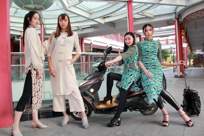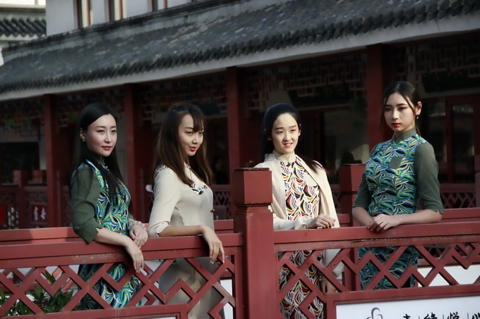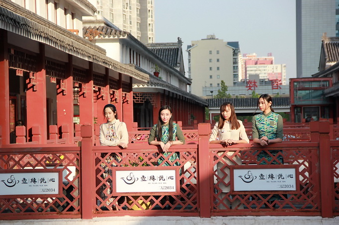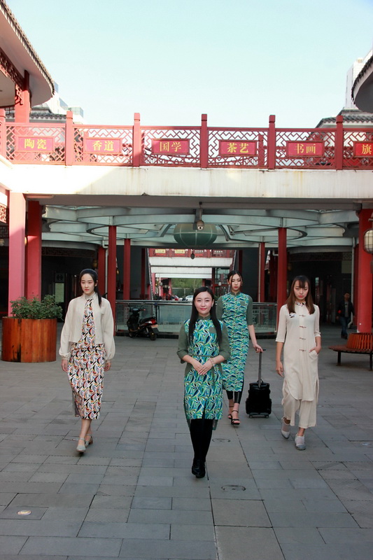 由青春美女作家、最佳国学才女李雨橙;北京职业模特学校/赵婷玉、王文鑫、陈泳宏共同演绎QIBUl柒布了新中式文化女装 陈泳宏 2014环球时尚超级模特大赛 季军