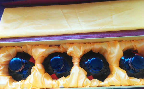 2、 二等奖两名,奖价值13800元的精品酒。包括小麦酒十年陈酿,珐琅彩《奖杯》,5000mL,收藏价9999元及《四色葫芦》酒。