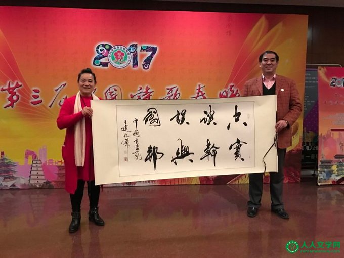 ![]() 人人文学网讯:2017年1月13日晚在中国国家图书馆艺术中心举行人人文学奖及2017第三届中国诗歌春晚颁奖典礼。中国诗歌春晚全国征文大赛、十大诗会等几十个奖项同台颁发,来自全国各地的嘉宾、作家诗人等各界人士200余人出席颁奖典礼。书法家王建强作品登上中国诗歌春晚舞台,向人人文学奖及中国诗歌春晚组委会捐赠书画作品。 王建强:书法家 中华书画家联合会主席 中国书画家协会理事 中慈华夏国际艺术中心秘书长 通州区人工耳蜗培训学校 北京启星孤独症康复学校校长 ![]() ![]() ![]() ![]() ![]() ![]() |