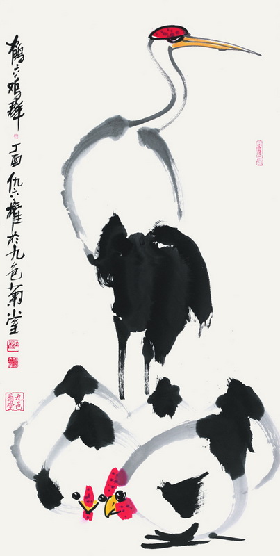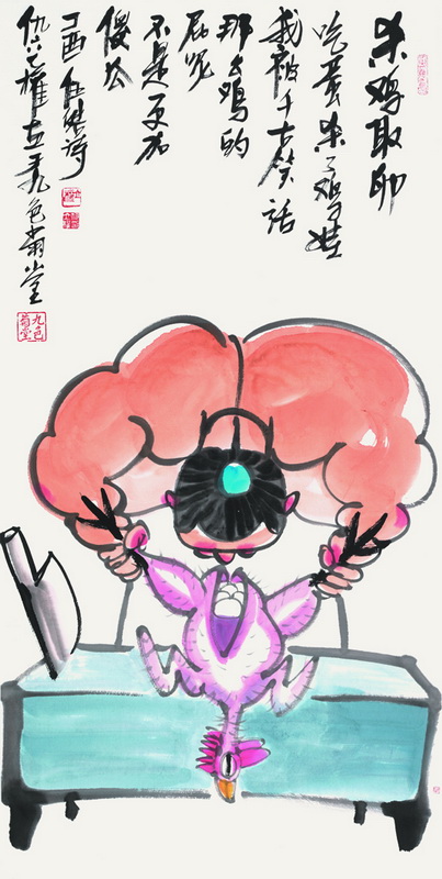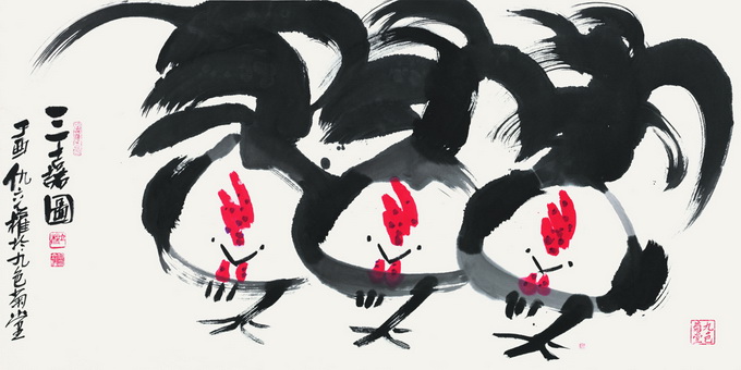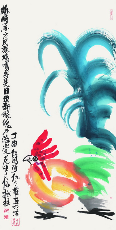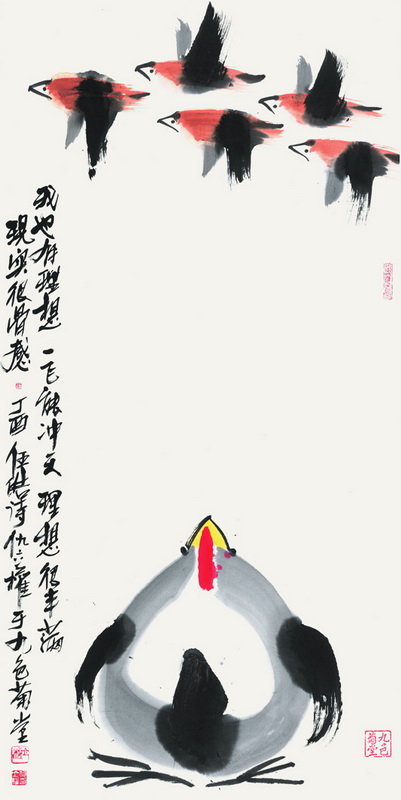 自古以来,鸡被称为“五德之禽”。《韩诗外传》说,鸡有五德:文、武、勇、仁、信。头戴冠者,文也;足生距者,武也;敌在前敢斗者,勇也;见食相呼者,仁也;守夜不失时者,信也。几千年来,鸡伴随着中华民族的传统习俗,寒暑往来,无时不与我们的劳动、学习和生活相随相伴,乐此不疲,其美德赢得了人们的赞誉,成为诗人、书画家笔下大写特写的吉祥物。