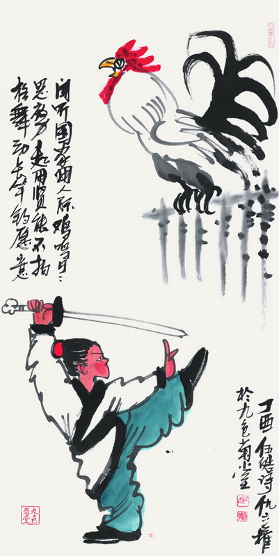 ![]() 闻鸡起舞——伍皓边保华仇立权诗书画