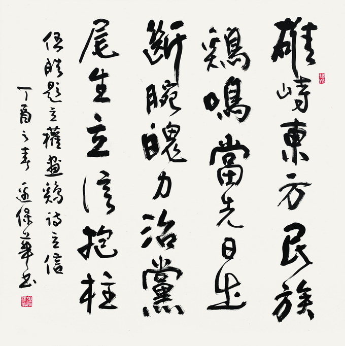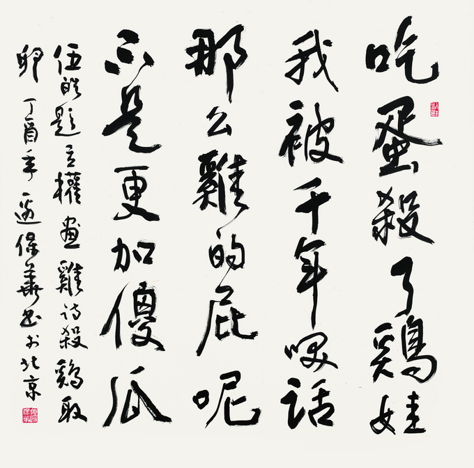 笔墨当随时代。2017年欣逢丁酉鸡年,鸡年亦为“吉”年,有吉庆祥和之美意。诗人伍皓、书法家边保华、画家仇立权以弘扬“鸡文化”、祝福“吉祥年”为出发点,汲取国学典故之精华,辅之于思想感情,佐之于人生感悟,以“鸡”为题材,用拟人化的手法联袂创作的70余幅书画作品,彰显大千世界形形色色“鸡”的精神风貌,有的昂扬向上,有的勤劳勇敢,有的拒绝诱惑…, 作者爱憎分明之情跃然纸上,观之令人赏心悦目!