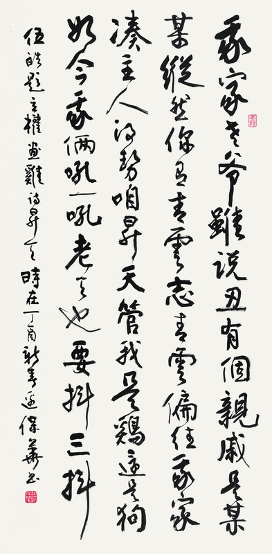 仇立权一直笔耕不辍,速写作品数量可谓汗牛充栋,数以十万计,为他创作出与众不同的艺术作品打下了坚实的基础,他的人物画,形神兼备,生动有趣、能让人强烈感受中国画书画同源的深厚功力。他的大写意动物将动物丰富的肢体语言抽离到高度概括的由点线面构成的艺术语言,其笔墨奔放肆意、酣畅淋漓,言简意赅、激情四射。