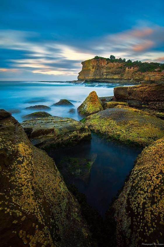 假如是在海边拍有关岩石的慢门,那么有个类似16-35mm焦段的广角是必要的。此时选择的是低角度的水平机位,要夸大前景和表现海平面的宽广,就得用镜头的超广角端拍摄。