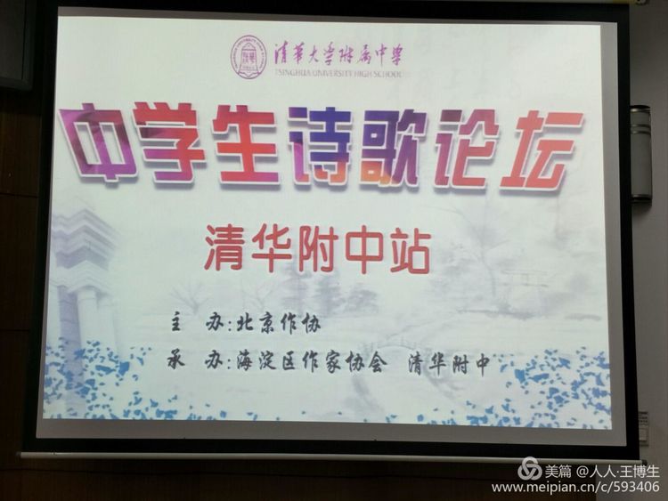 人人文学网讯:2017年10月28日,由北京作家协会主办,海淀区作家协会、北京清华附中承办的第三场中学生诗歌论坛——北京清华附中站成功举办。活动的目是普及诗歌知识,开拓眼界,为中学生诗歌爱好者与诗人们提供近距离交流的机会,为诗歌的未来进行的有益实践。