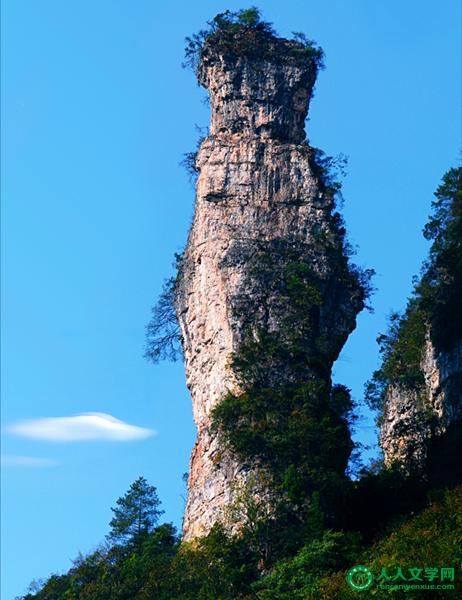九道门是由跪狮台边悬崖顶端的13根最大石柱组成,石柱错落有致、异峰突兀、古松苍劲、林木葱郁,石柱拔地而起,险峻非常。