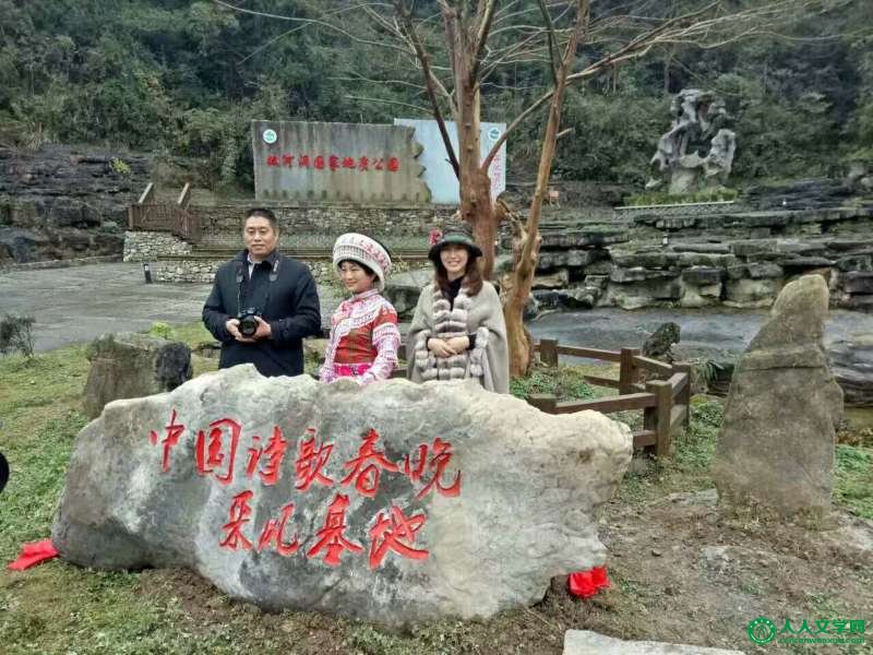 (诗人李发模、梅尔、武眉凌以及绥阳宣传部长李梅为“中国诗歌春晚采风基地”揭牌)