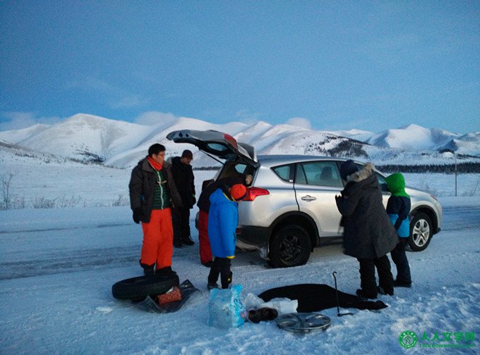 ![]() 丹普斯特公路,真是出名的难走。据说在夏季,一辆车一个来回下来,它的砂石路面平均要爆掉三个轮胎。而现在冬季,路面被厚厚的冰雪覆盖,还相对对轮胎的损害要小的多,所以我们才爆掉一个轮胎,已经算是特别的幸运了。 七手八脚一阵忙活之后,备胎终于换好了,连太阳也累得咕咚一声坠入地平线了。 晚上快8点的时候,我们摸黑赶到了丹普斯特公路必经的唯一的鹰原酒店。丹普斯特公路此时是封路的, 王更去找了工作人员打开路障,我们才开进酒店。回想一下就该料到了,因为后来一路上几乎就再没遇到对向驶来的车了,同时我们也庆幸在封路的前后脚开回来了,因为这封路又不知是要等几天才能回来了。 鹰原酒店,凡往来北极因纽特的车辆,都会在这里住宿休整。亲切的鹰原酒店,我们又回来了。孩子们又来到充满无穷趣味的酒吧大堂玩乐,玩他们喜欢的沙狐球。还有那么多熊皮、狼皮、牛皮,驯鹿角、驼鹿角、野牛角,以及老鹰、北极狐等等动物飞禽的标本,我们对这里的印象都还那么深刻。 ![]() 第二天一早,张庆升和王更便去鹰园酒店旁边的汽车修理店购买新的轮胎,但没有适合的型号,只找到一个比原装轮胎小一号的轮胎,凑合能用,以替换下那个备胎。他俩一番周折后,把车的问题也彻底搞定了。 我们早饭后,一切就绪,准备上路,王更家也重新收拾了行李,把那个巨大的moose角从车顶取下来,卡进后备箱,以免在接下来的路上被加拿大当局盘查,给自己找麻烦,因为这毕竟属于野生动物。 临行前,大家还从鹰原酒店领取了育空省颁发给我们的进入北极圈的证书。 再见了,鹰原!再见了,因纽特! |