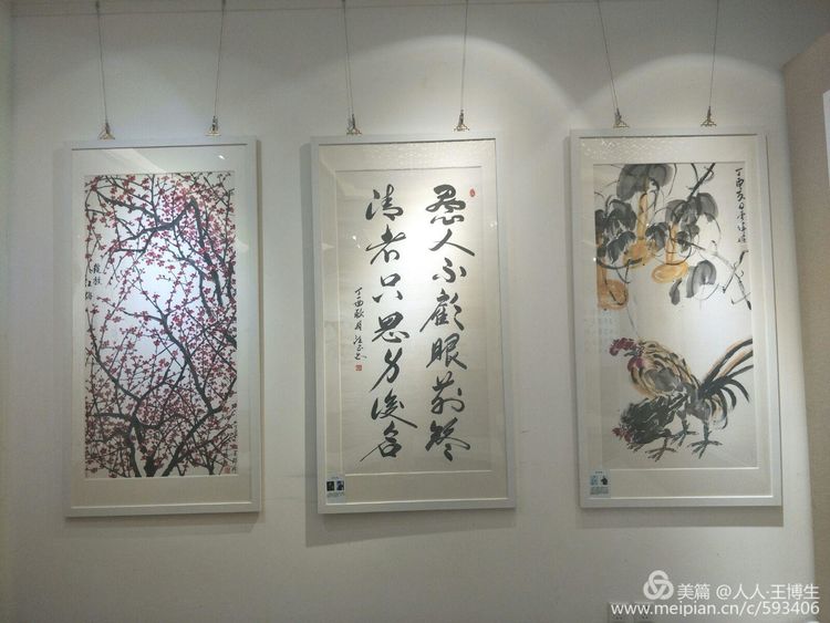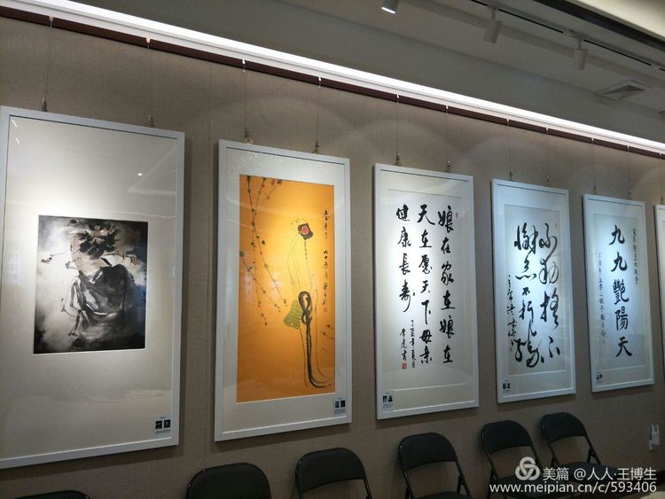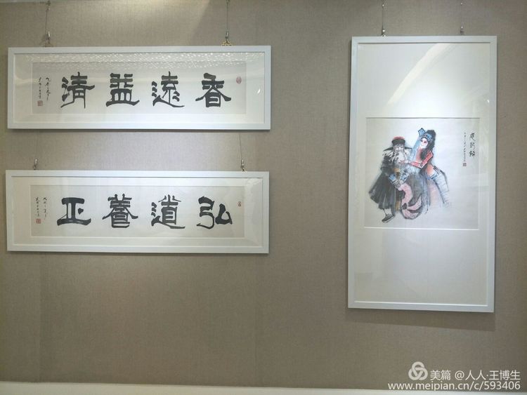 现场展出了多位著名演员的书画作品。其中有杨再葆、张铁林、李雪健等演员的作品。