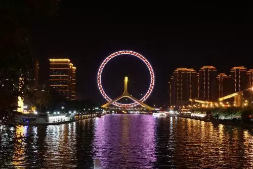 大运河北段中重要城市,因大运河的漕运而兴起。浓浓的“津味儿”融汇在高百米的“天津之眼”摩天轮和数座风格迥异的海河大桥、古色古香的文化街及纯正地道的天津相声里,当然还有脆香的煎饼果子、酥软的耳朵眼炸糕。 🔺天津之眼——摩天轮 🔺横亘在海河之上的现代大桥 🔺古色古香的文化街