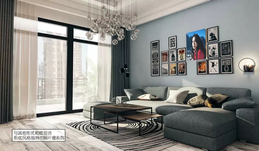 场景展示 (单品客厅悬挂效果) (餐厅悬挂效果) (与其他相框搭配形成照片墙效果) (希尔顿酒店的音乐大床房)