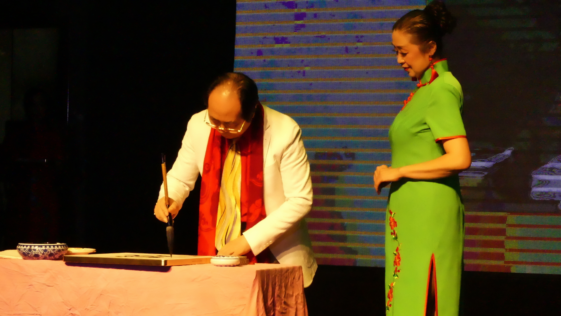 原新华社魏老先生亲自给大家现场展示 整个联谊会节目丰富,安排紧凑饱满,有大合唱、歌曲戏曲演唱、舞蹈、沙画表演及互动抽奖等等,高朋满座,热情洋溢。军旅歌手,央视青歌赛获奖者、文化部“文华奖”获得者王玮玮演唱了《恭喜恭喜》、著名歌手段雅丹、宁可、刘洁分别演唱了《报答》、《远方》、《在希望的田野上》;全国寻找刘三姐央视总冠军歌手王馨演唱了《多谢了》;北京京剧院青年演员,著名京剧演员谭鑫培先生,第六代孙,梅葆玖先生的弟子谭茗心演唱了梅派著名唱段《贵妃醉酒》、《梨花颂》;中国民族新派二胡拉唱表演艺术家、央视星光大道特邀评委拉毛王旭演唱了《情牵西藏》;舞蹈有"东方舞.艺术团"表演的藏族舞蹈“美丽的姑娘卓玛拉”;香港艺人冰花表演蒙古独舞《草原上的月亮》还有苏大宝先生的沙画表演。此外,音乐饰家和医联网的抽奖互动,使整个联谊会达到了高潮。 将军后代合唱团大合唱《东方红》等歌曲 物联网人工智能与音乐饰家产品简介 精彩抽奖活动使整个晚会现场达到高潮 晚会花絮及部分嘉宾合影留念 王剑平、王玮玮与作曲家李勤老师 人民日报新闻战线陈开悟主任 歌手宁可 歌手雅丹 梅葆玖先生的弟子谭茗心 将军后代合唱团大合唱现场彩排 本次活动总策划互联网法制新闻中心张东平主任 周恩来总理侄子周秉和先生现场书法题赠“音乐饰家"