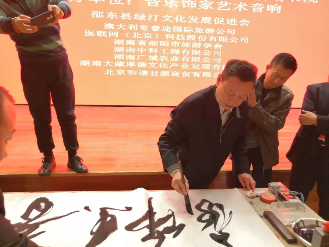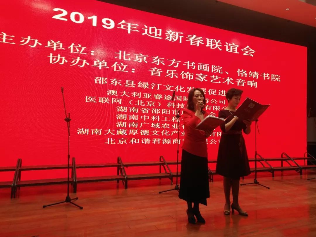 2018年12月27号下午音乐饰家迎新春联谊会在北京湖南大厦宴会厅隆重举行。 中央国家有关部门老领导和开国将领与老红军的后代,以及艺术界、新闻界、企业界等二百多人欢聚一堂,畅叙改革开放取得的伟大成绩 。 晚宴现场湖南大厦宴会厅 联谊会即将开始 这次迎新春联谊会,由音乐饰家艺术音响联合北京东方书画院、恪靖书院及医联网(北京)科技股份有限公司、澳大利亚睿途国际旅游公司等兄弟单位联合承办。 中央电视台著名主持人梁晨与婷婷主持晚会 在联谊会开始之前,特别安排了音乐饰家艺术音响现场体验与现场书法笔会活动,著名书法家现场挥笔泼墨精彩纷呈,本次活动由中央电视台全程录制,30多家新闻媒体单位给予热烈报道。 中央电视台现场采访音乐饰家壁挂艺术音响 音乐饰家品牌创始人王剑平先生亲自讲解 受到领导及嘉宾一致高度赞扬与评价 著名书法家蔡新勇现场题赠“音乐饰家”