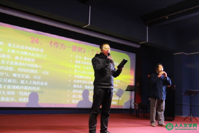 2015“诗词中国”最具影响力网络诗人、 中华诗词学会常务理事、诗词吾爱网投资人了凡先生朗诵了他的原创诗作《诗人》、《作为一颗树》。