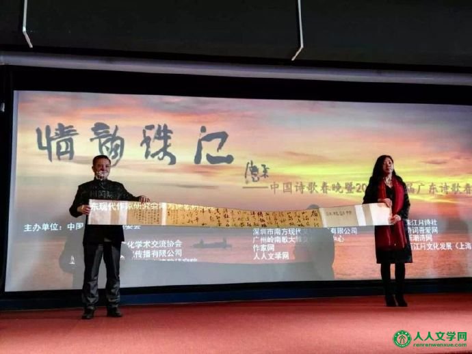 中国诗歌春晚发起人,总策划屈金星,市场总监陈隋和一行专程从北京赶来。屈金星代表中国诗歌春晚组委会对广东分会场开幕表示热烈祝贺,并朗诵了岭南知名文化学者陈璀的《孔子大行铭》。
