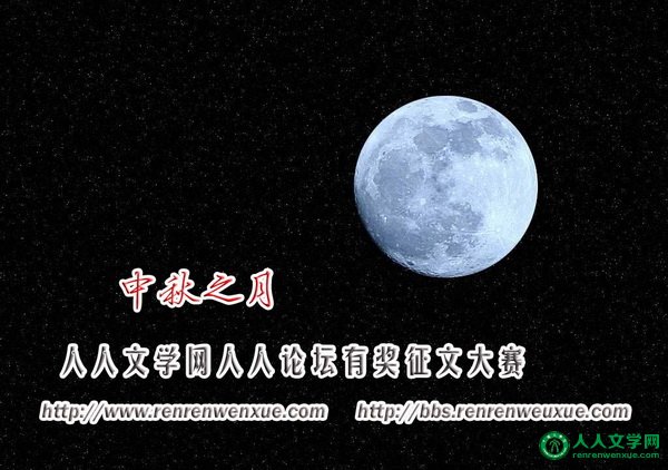 人人文学网相关栏目:http://www.renrenwenxue.com 请注明:“中秋征文"字样。 我们将从征文作品中评选出一等奖3名,二等奖6名,三等奖10名,并为获奖者颁发著名书画家的精美作品和获奖证书作为奖品。 获奖人员,由人人文学网聘请为人人论坛编辑、版主和人人文学网刊专栏作家、责任编辑和轮值主编。《微诗刊》特邀编辑,人人文学网微信平台编辑。外地文友经申请成为地方分站负责人。 中秋,让我们激情燃烧,中秋,让我用文字记述曾经! 请牢记:大赛截止日期为2015年10月15日8:00止。 人人论坛,人人互动交流的平台!人人文学,草根文学家成长的摇篮! 欢迎书画家,以中秋为题,创作相关作品,作为奖品奖励获奖人员。人人文学网、人人书画网将对书画艺术家全面报道。作品邮寄:北京市100055-22信箱,或到莲花池公园参加笔会。联系QQ:253581255 ![]() ![]() ![]() ![]() |