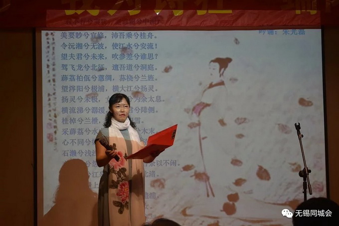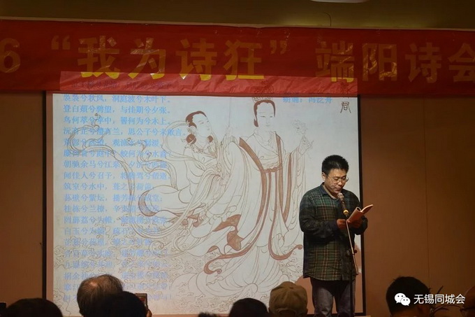 人人文学网讯: 6月5日,为了纪念伟大的爱国诗人屈原,无锡市青年社会组织服务中心与《中国诗人》诗刊编辑部联合主办、无锡天行学社和一汽解放锡柴团委承办“我为诗狂”端阳诗会。朗诵会上现代著名诗人和剧作家贺敬之和屈原后裔,北京资深媒体人、文化策划人、诗人、辞赋家屈金星均来贺电祝贺这次端午诗会举办成功!中国诗人主编著名爱心诗人安娟英现场朗诵了屈金星的长诗《屈原领》的前二叚整个朗颂会诗情激昂掌声连连。