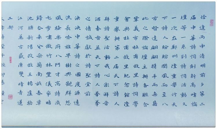 《拜诗圣文》书法长卷,由著名诗词策划人东之策划监制,由著名诗人蔡世平、林从龙、刘征先后赐墨题跋,由全国诗词楹联书画界60多位著名人士联署签名。书法由黄丽兰女士精心创作,原文由王国钦先生历经三年泣血撰写。 《拜诗圣文》书法长卷在整整长达一年的创