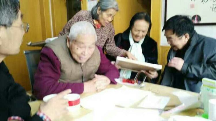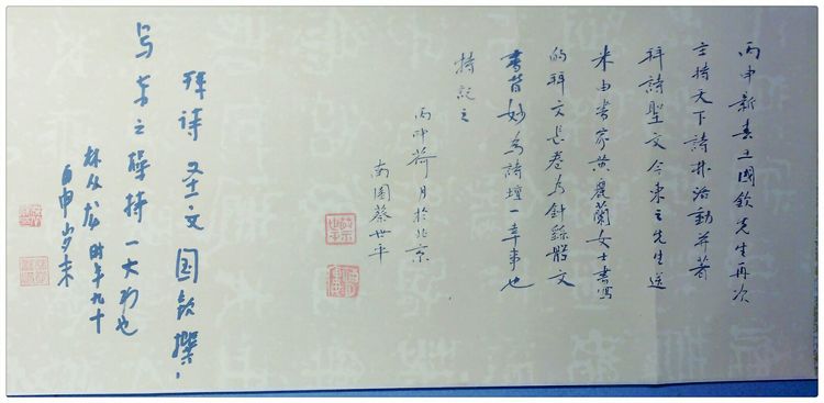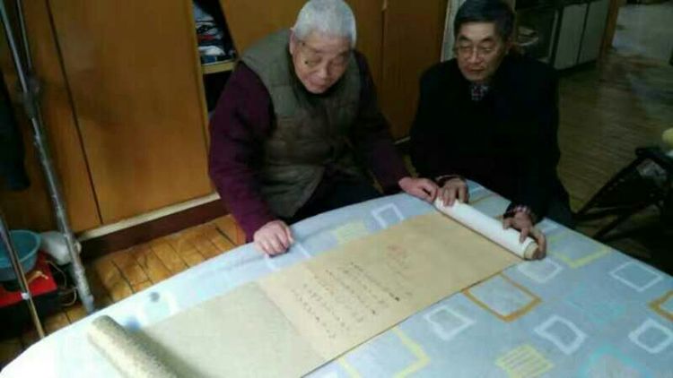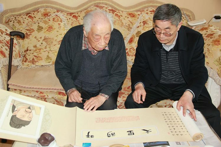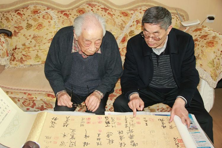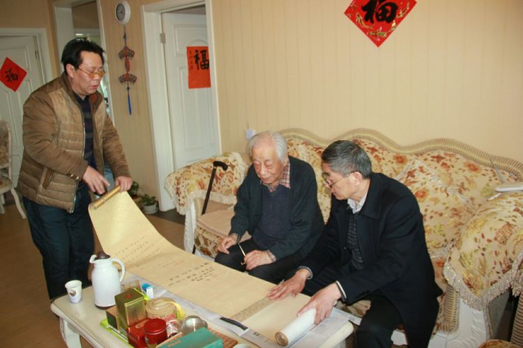 王国钦、东之、王博生拜访著名诗人刘征。刘老愉快地在书法长卷上赐墨题跋。(上五图)