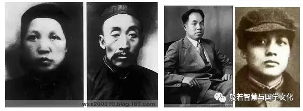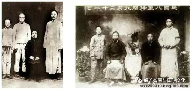 1919年春与母亲、弟弟在长沙(上左图)。1919年11月与父亲、弟弟在一起(上右图)