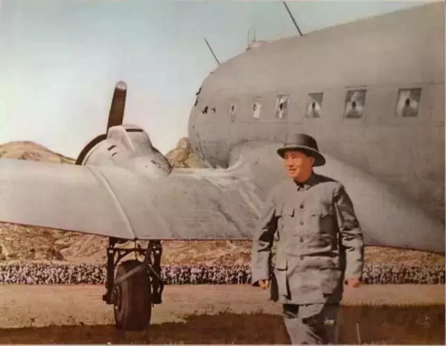 毛主席在延安机场。(一九四五年)
