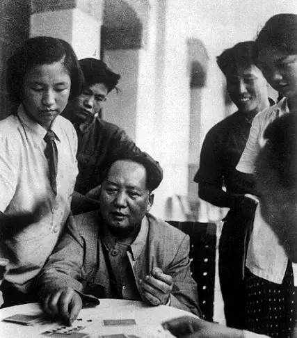 1954年毛泽东与工作人员一起打扑克