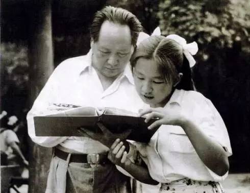 1951年夏毛主席和李敏一起翻看影集。毛主席给他的两个女儿起名李敏、李讷,一定是希望他的孩子“君子敏于行而讷于言”。