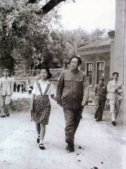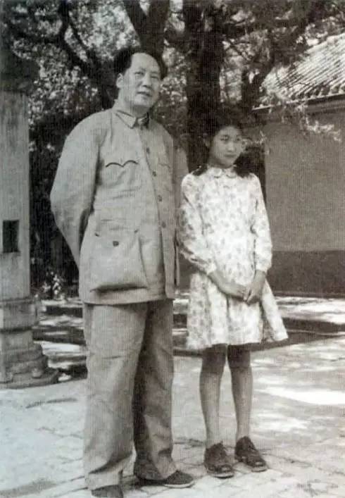 1951年,毛泽东带李讷在中南海散步。