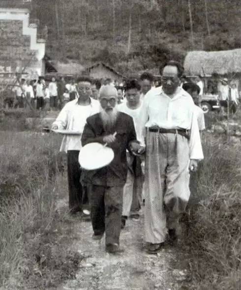 1959年6月26日,毛泽东同他少年时的私塾老师毛宇居携手同行。