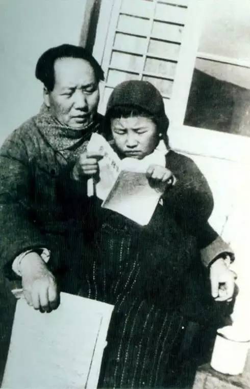 1946年毛主席在延安窑洞前教李讷识字。天下父母一样的心,舐犊情深。尝过太多离别辛酸的父亲不愿意让小女儿离开自己,甚至连保育院都不让上,干脆留在身边自己给女儿上课。