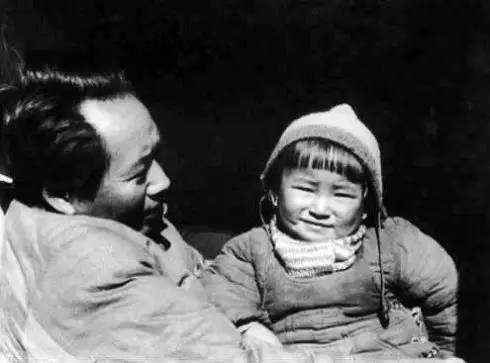 1943年冬毛主席与小女儿李讷在延安枣园,李讷享受父爱最多。
