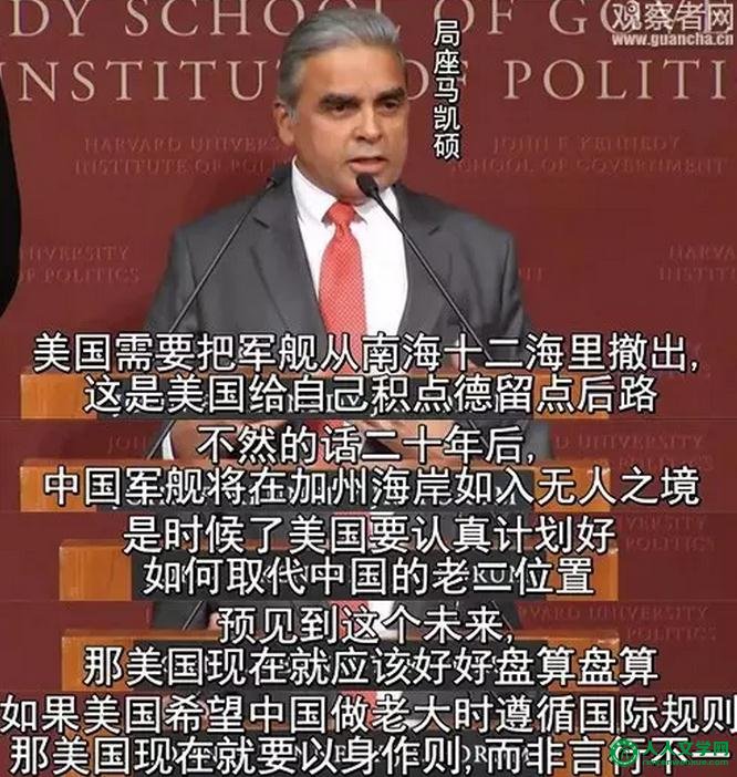 (文/观察者网 杜津)最近,新加坡前驻联合国大使马凯硕2015年在哈佛大学肯尼迪学院的一场演讲火了,演讲的主题是“如果中国成为世界第一强国”(What Happens When China Becomes Number One Institute of Politics),这位被称为“史上最强悍亚洲崛起代言人”的职业外交官就南海、亚投行、美国媒体等问题进行了一番点评,言语犀利。