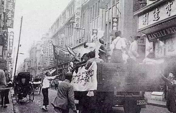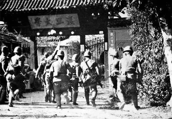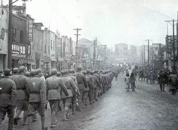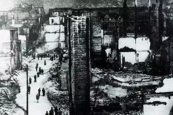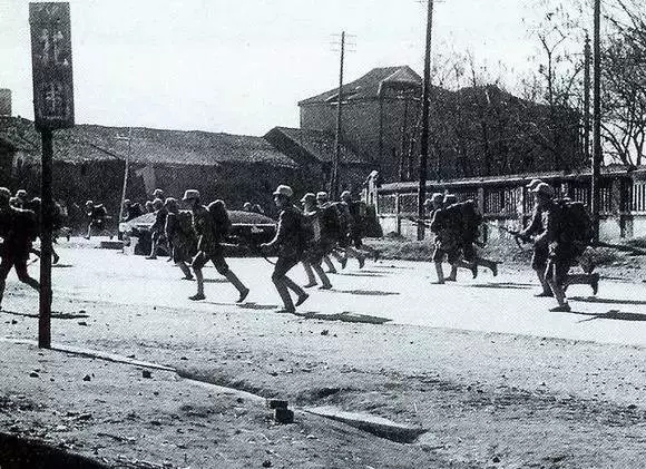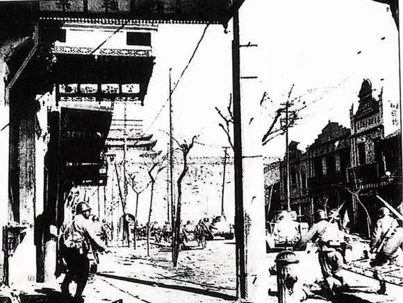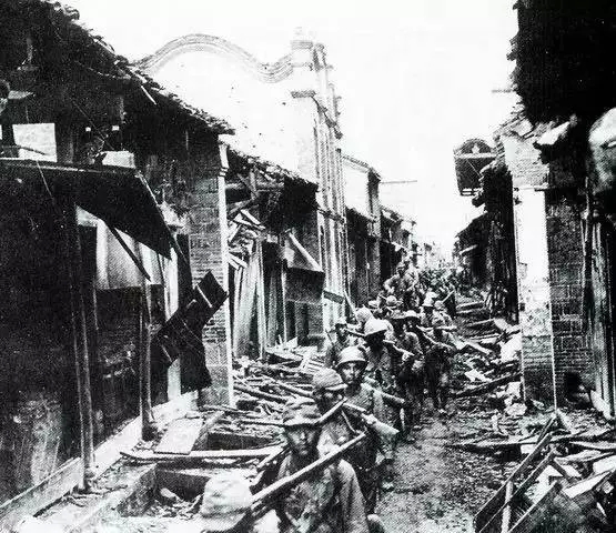 ▲豫南会战中日军进入已经化为废墟的信阳市内