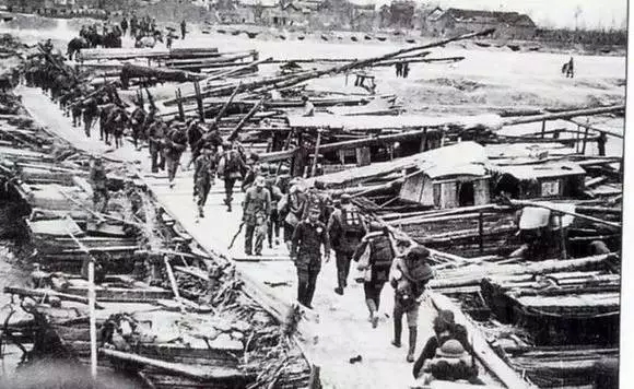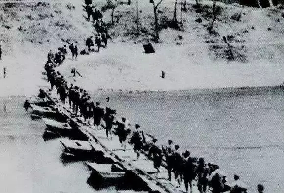 ▲我军在南运河架设浮桥,准备渡河迎敌