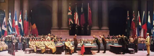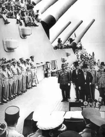 ▲1945年9月3日,日本向盟军投降仪式在东京湾密苏里号军舰上举行