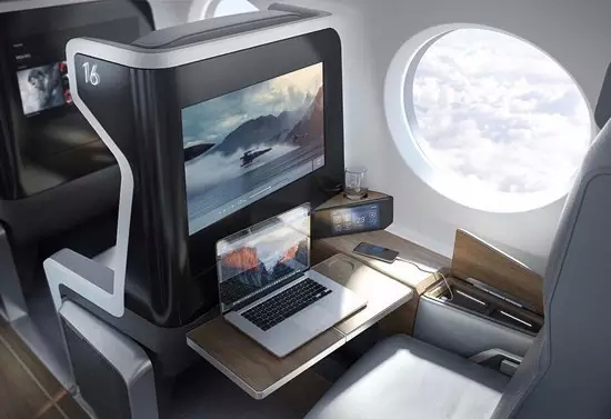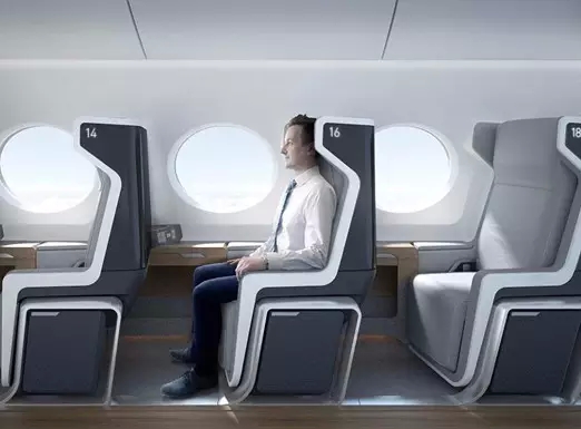 实际生产型的Boom会有45个座位。 为了节约重量,座位只有标准国内航班的头等舱水平,不能放倒平躺。 座位的布置是两列单排座位,这样每个乘客既能一览舷窗的景致,又能尽享走廊的便利