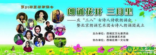 ![]() 人人文学网讯:阳春三月,柳绿花红。为庆祝“三八”国际妇女节的到来,西城区文化委员会、北京朗诵艺术团精心策划,将于三月五日下午两点在西城区文化中心小剧场为您献上一场精彩纷呈的朗诵演唱会。 这台朗诵会不同寻常,朗诵者都是近年来活跃在我国诗坛上的卓有成就女诗人。他们不仅会写诗,而且热爱朗诵、善于朗诵。她们是中国作家协会会员王妍丁、海田、安琪、戴墨、娜仁琪琪格、关雎、中国诗歌学会会员潇潇、爱斐儿、杜杜、河北作家协会会员武眉凌,上海作家协会会员瑞箫、中国音乐文学学会会员阿紫,原声诗社社长舒子原,诗意中国总撰稿人非也。 这些女诗人,他们以柔软细腻的诗心,勾勒着生活的点点滴滴,倾诉着爱恨情仇,她们用人生书写诗歌,也用诗歌温暖人生。朗诵会上您将听到她们如玉液琼浆的诗篇:《写给西岳的诗行》《英雄赞歌》《我的春天在手机上》《世界悄悄的爱你》《写给母亲》《2013春雪》《在最深的尘世爱你》《断桥情诗》《生如胡杨》等。 女歌唱家冯桂荣,张爱等将为您演唱耳熟能详、久唱不衰的歌曲《烛光里的妈妈》《女人花》《一杯美酒》《阳光路上》。 朗诵会后,著名朗诵艺术家殷之光将宣布北京朗诵艺术团女诗人朗诵团成立。女诗人朗诵团的成立开创了中国朗诵史上的先河,它壮大了朗诵的队伍,丰富了朗诵园地,著名朗诵艺术家殷之光先生任北京朗诵艺术团女诗人朗诵团艺术总监,中国作家协会会员王妍丁任北京朗诵艺术团女诗人朗诵团团长,中国作家协会会员海田任副团长。 |